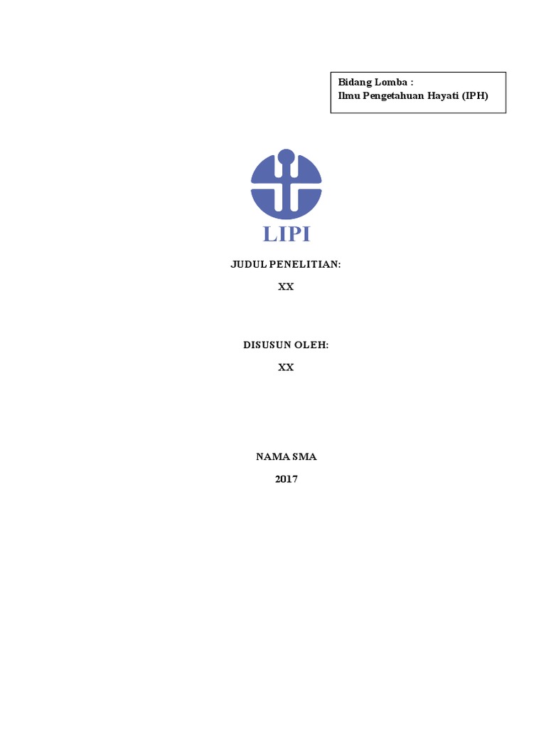 Format Proposal tersedia pada halaman download. Proposal penelitian yang dilaksanakan oleh siswa misalnya LKIR proposal ini disusun sesuai dengan rambu-rambu penelitian. Format Penulisan PROPOSAL KARYA TULIS ILMIAH LIPI Related Papers.