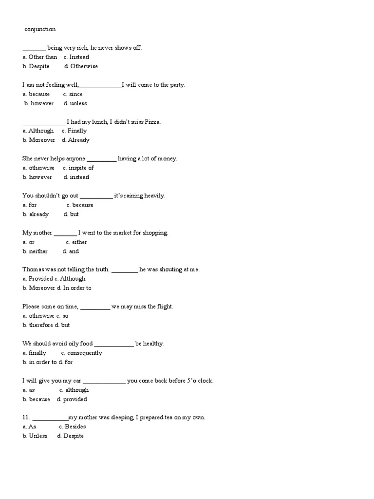 1 15 Contoh Soal Conjunction Pilihan Ganda dan Kunci Jawaban. As se- Diana is as beautiful as her sister. Setiap soal dan kunci jawaban correlative conjunction bisa anda download dalam bentuk pdf atau dokumen melalui link yang sudah kami sediakan dibagian bawah.