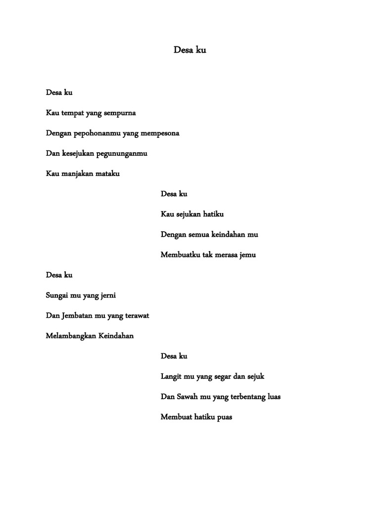 Contoh puisi desaku. Dibawah ini yang merupakan contoh puisi satire. Inilah kumpulan puisi tentang alam. Puisi Desaku Yang Permai.