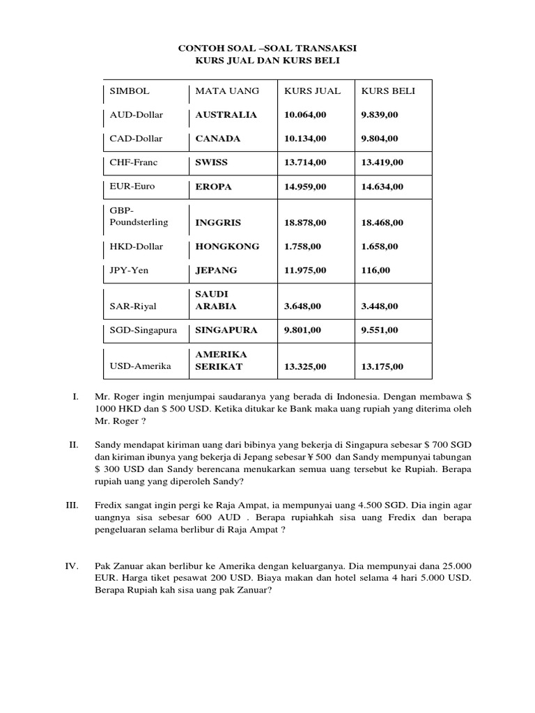 Contoh Soal Ekonomi Kurs Jual Dan Kurs Beli Contoh Soal Terbaru