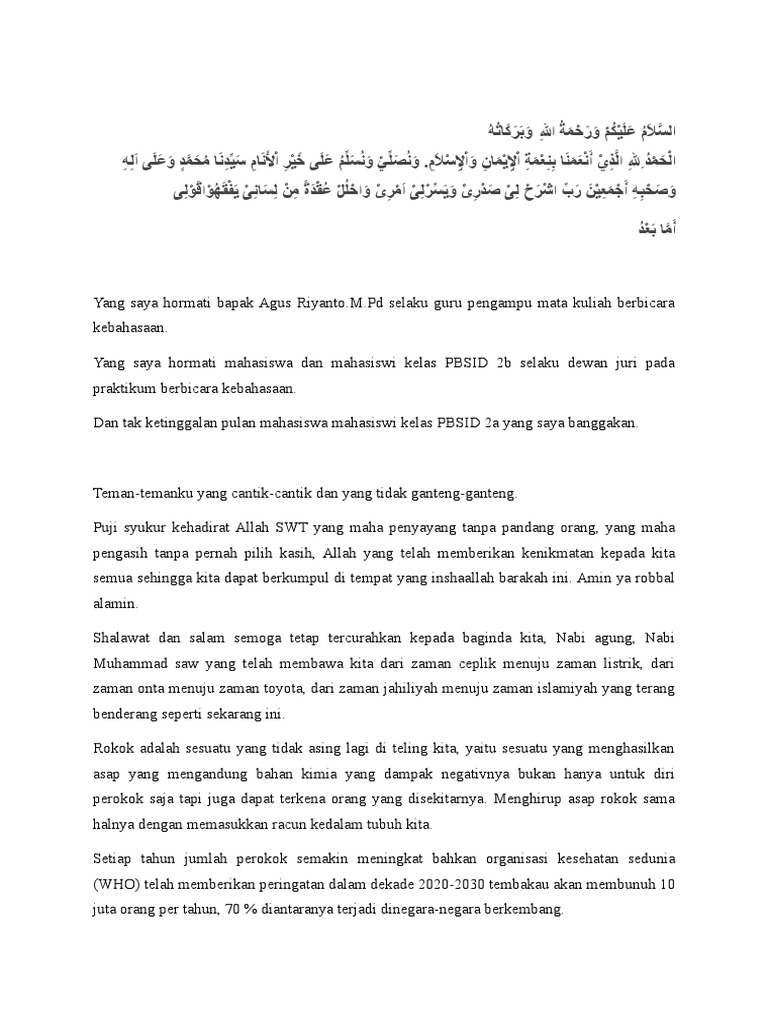 Berikut adalah kumpulan contoh pidato singkat bahasa indonesia menggunakan teks seperti tema kesehatan pendidikan sumpah pemuda narkoba kenakalan remaja. Contoh pembukaan teks pidato yang baik benar dan menarik. Humor segar tips penting dalam membawakan humor adalah jangan pernah bilang bahwa saya ada cerita lucu atau saya.