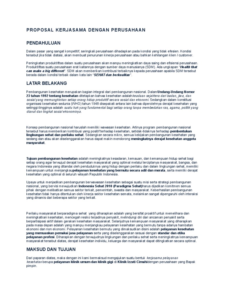 Doc Contoh Proposal Penawaran Kerjasama Abi Be L O Academia Edu