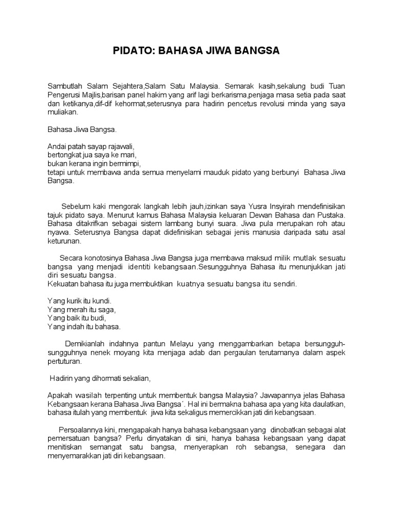 Teks Pidato Bahasa Jiwa Bangsa 2