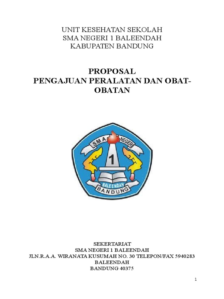 Diharapkan dengan terpenuhinya pengajuan proposal ini maka akan meningkatkan pelayanan medis bagi warga SMA Negeri 1 Baleendah. Silahkan klik pada judul artikel berikut untuk mendapatkan penjelasan lengkap seputar contoh proposal permintaan pengajuan obat uks yang Anda perlukan. Data Pendukung Lainnya Demikianlah permohonan kami atas perhatian dan pertimbangan dari Bapak kami ucapkan terimakasih.