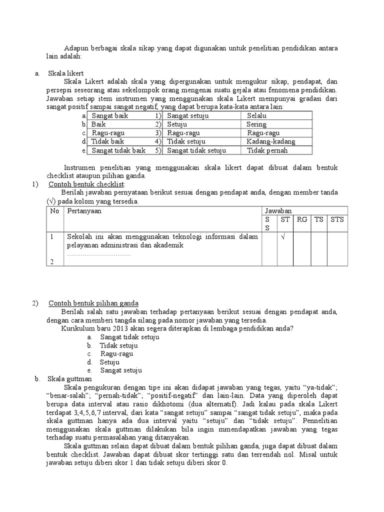 Adapun Berbagai Skala Sikap Yang Dapat Digunakan Untuk Penelitian Pendidikan Antara Lain Adalah
