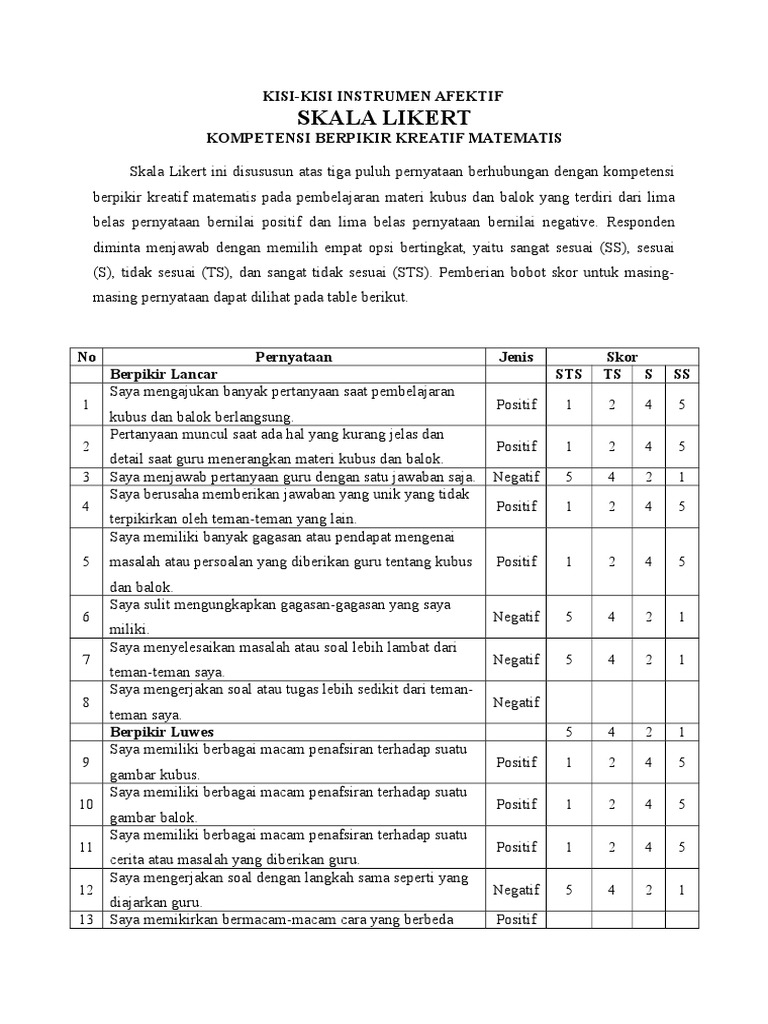 Kisi Kisi Skala Likert Angket