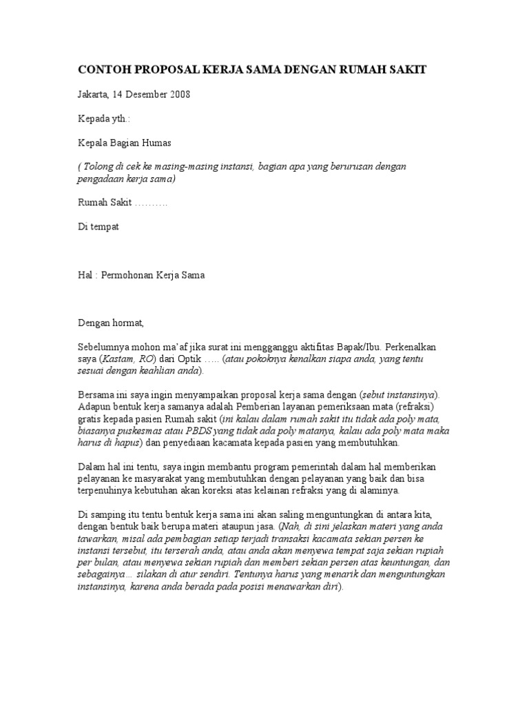 Contoh Proposal Kerja Sama Dengan Rumah Sakit Pdf