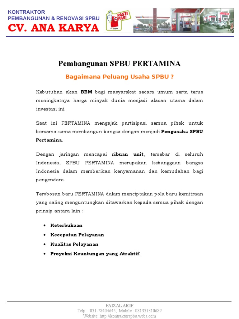 KONTRAKTOR PEMBANGUNAN RENOVASI SPBU CV. You can Get the Contoh proposal pengajuan pendirian spbu files here. Desain bangunan harus disesuaikan dengan karakter.