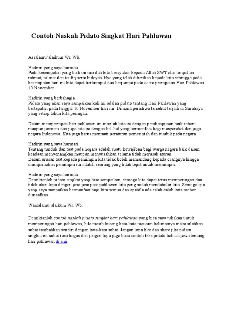 Contoh Naskah Pidato Singkat Hari Pahlawan Pdf