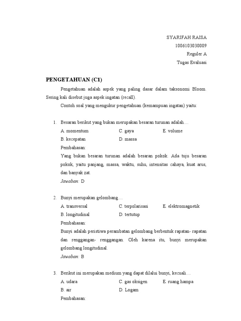 Contoh Soal C1 C2 C3 C4 C5 C6 Pai Dapatkan Contoh