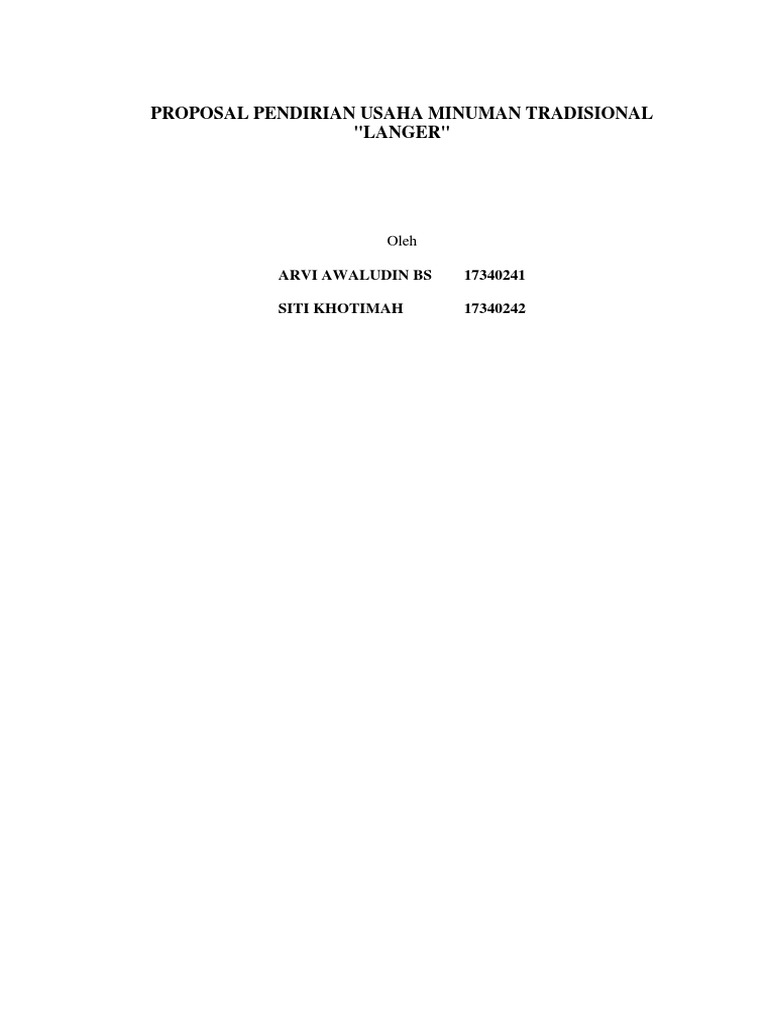 Proposal Pendirian Usaha Minuman Tradisional Pdf