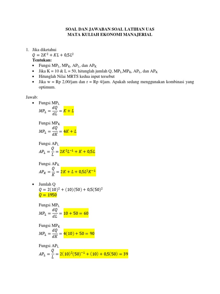 Soal Jawaban Uas Ekonomi Manajerial Kumpulan Contoh Surat Dan Soal Terlengkap