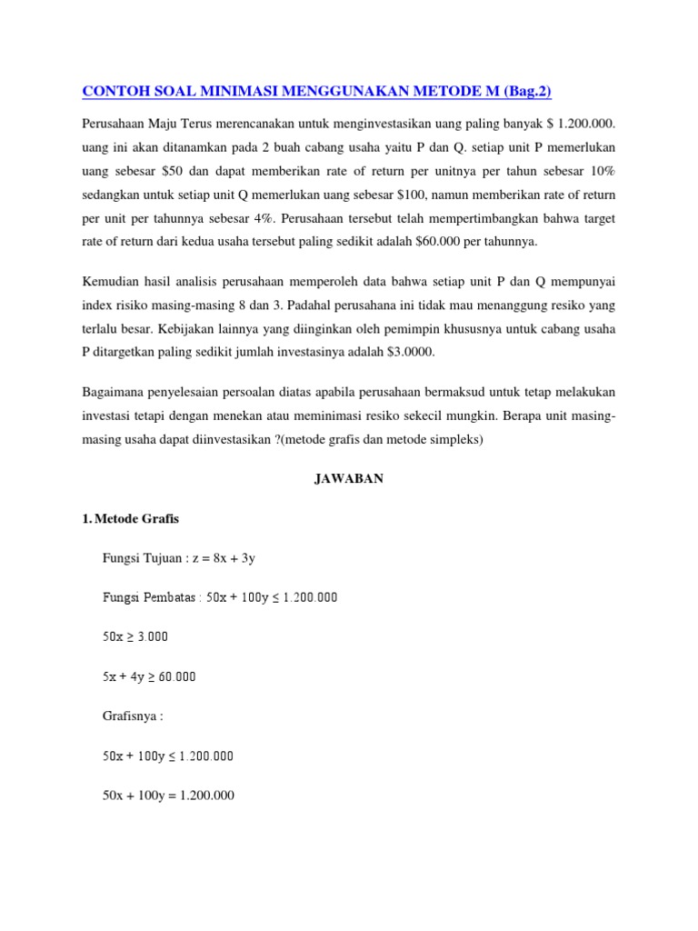 Contoh Soal Minimasi Menggunakan Metode M Pdf