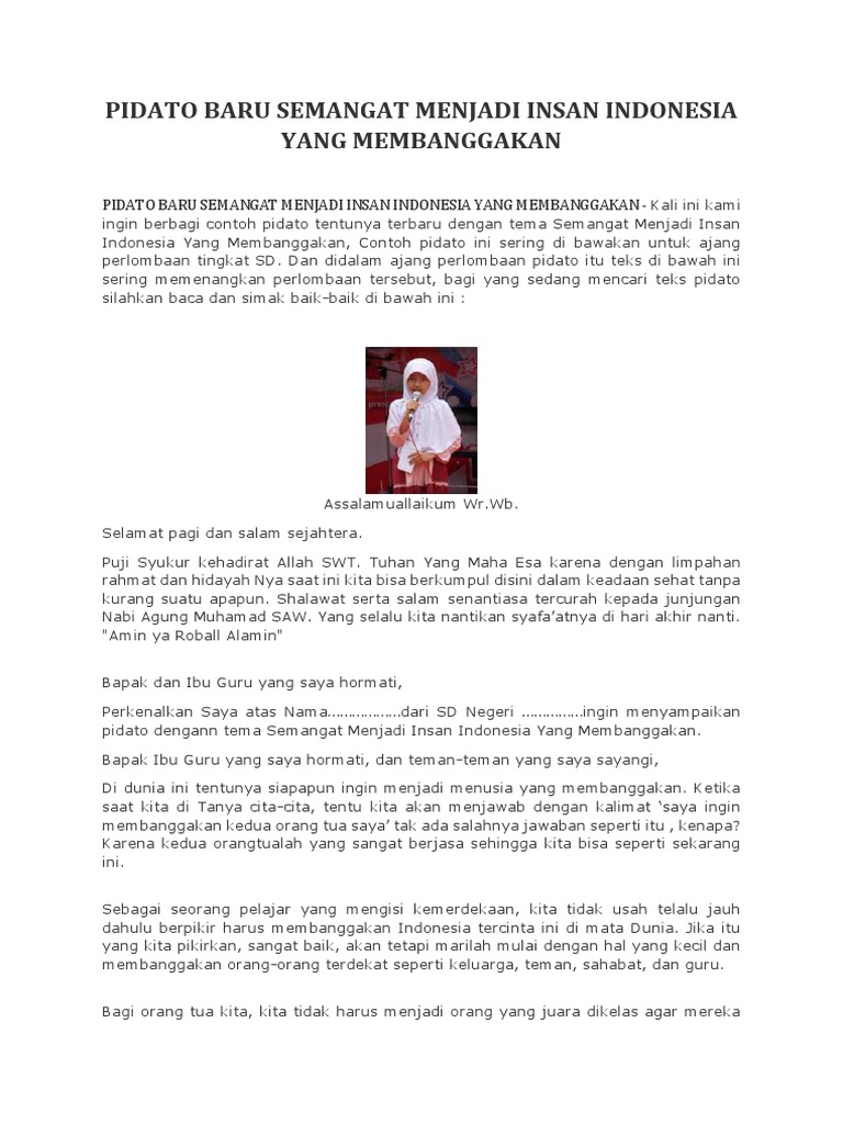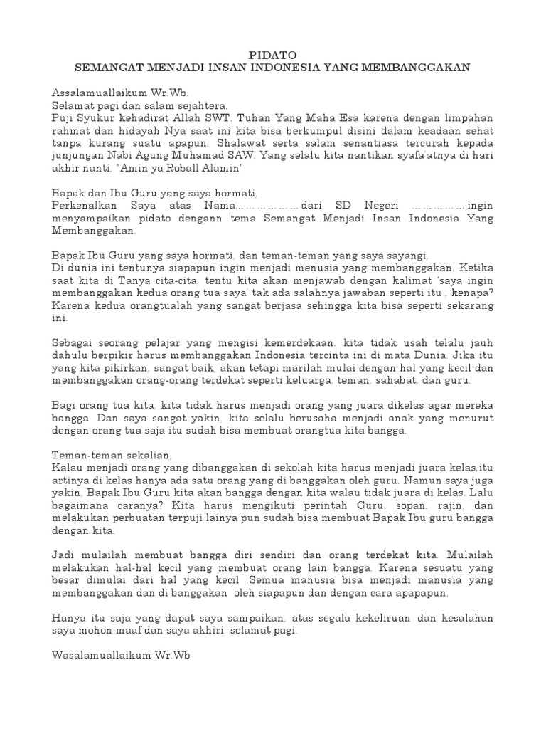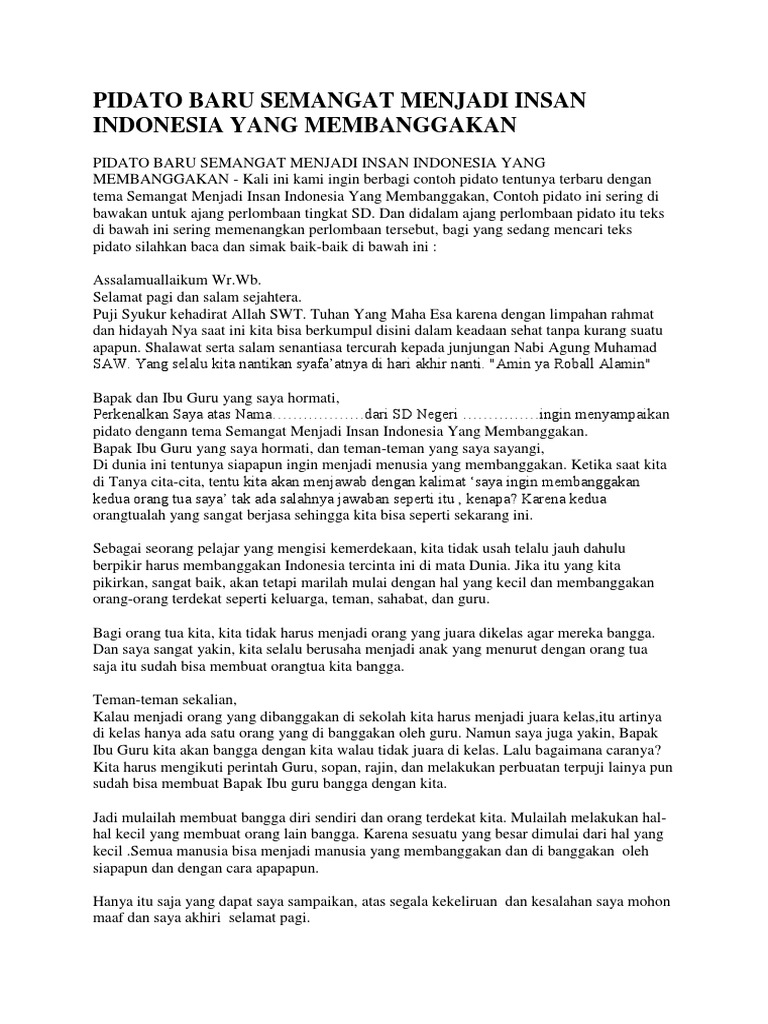 Contoh Pidato Tentang Semangat Menjadi Insan Indonesia Yang Membanggakan. Our website always provides you with hints for refferencing the maximum quality video and picture content please kindly search and find more informative video articles and. Teman-teman dan Bapak Ibu guru yang saya hormati Siapa pun di dunia ini tentu ingin menjadi manusia yang membanggakan.