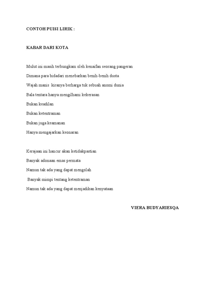 Contoh Puisi Lirik Pdf