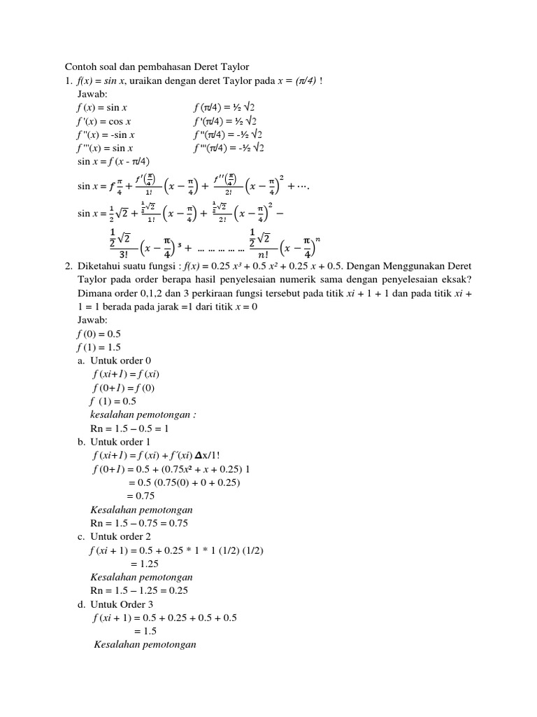 Contoh Soal Deret Taylor Dan Penyelesaiannya Contoh Soal Terbaru