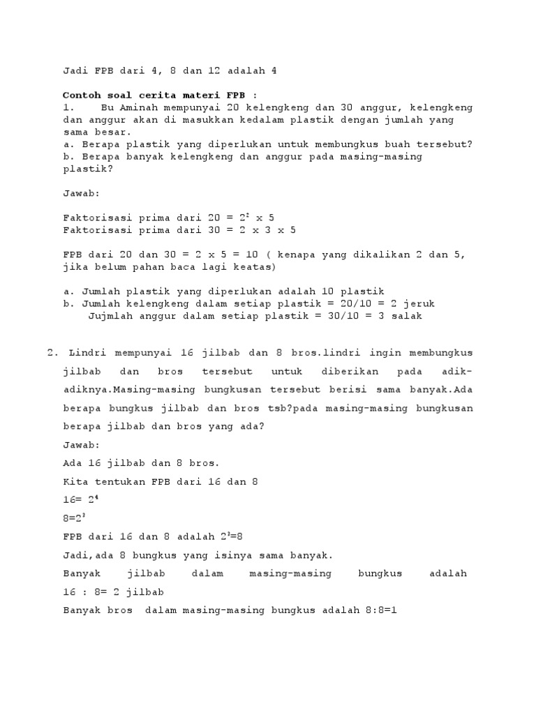Tugas 3soal cerita tentang fpb dan kpk. 14mb Tanggal pembuatan soal. Bilangan bulat positif pengertian dan contoh soalnya.