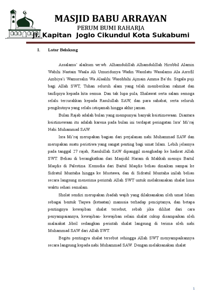 Contoh Proposal Isra Mi Raj Masjid Doc Masnurul