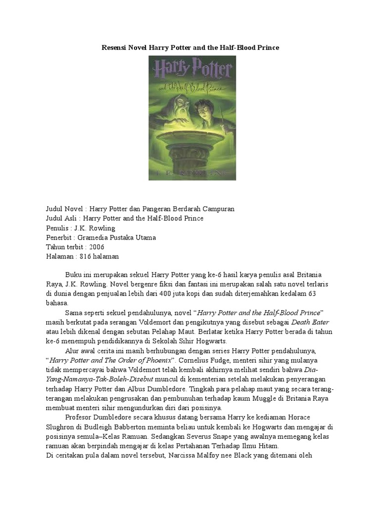 Tugas Analisis Resensi Docx Analisis Struktur Resensi Judul Buku Harry Potter And The Half Blood Prince Harry Potter Dan Pangeran Berdarah Campuran Course Hero