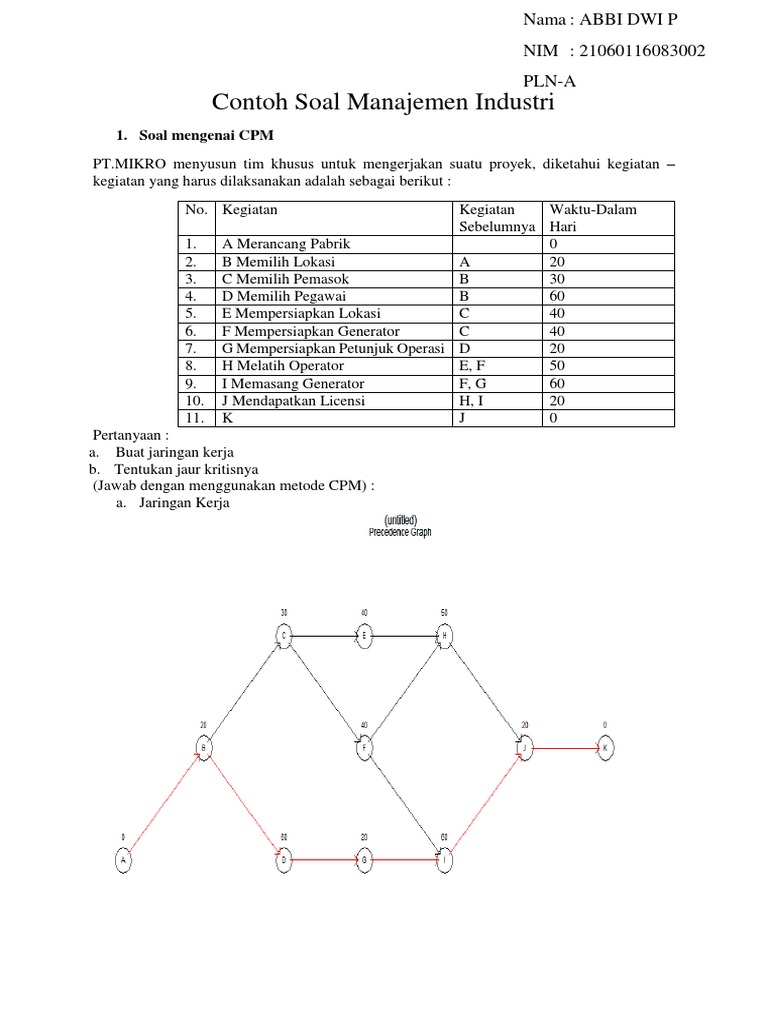 Contoh Soal Manajemen Proyek Cpm Dan Pert Contoh Soal Terbaru