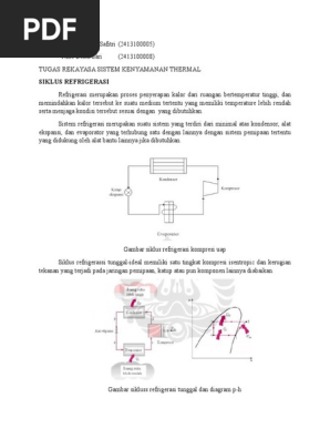 Tugas 1 Kelompok 3 Resume Perhitungan Siklus Refrigerasi Dan Contoh Soal Pdf