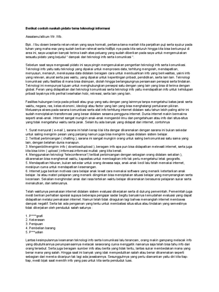 Pidato Bahasa Indonesia Teknologi Informasi Dan Komunikasi