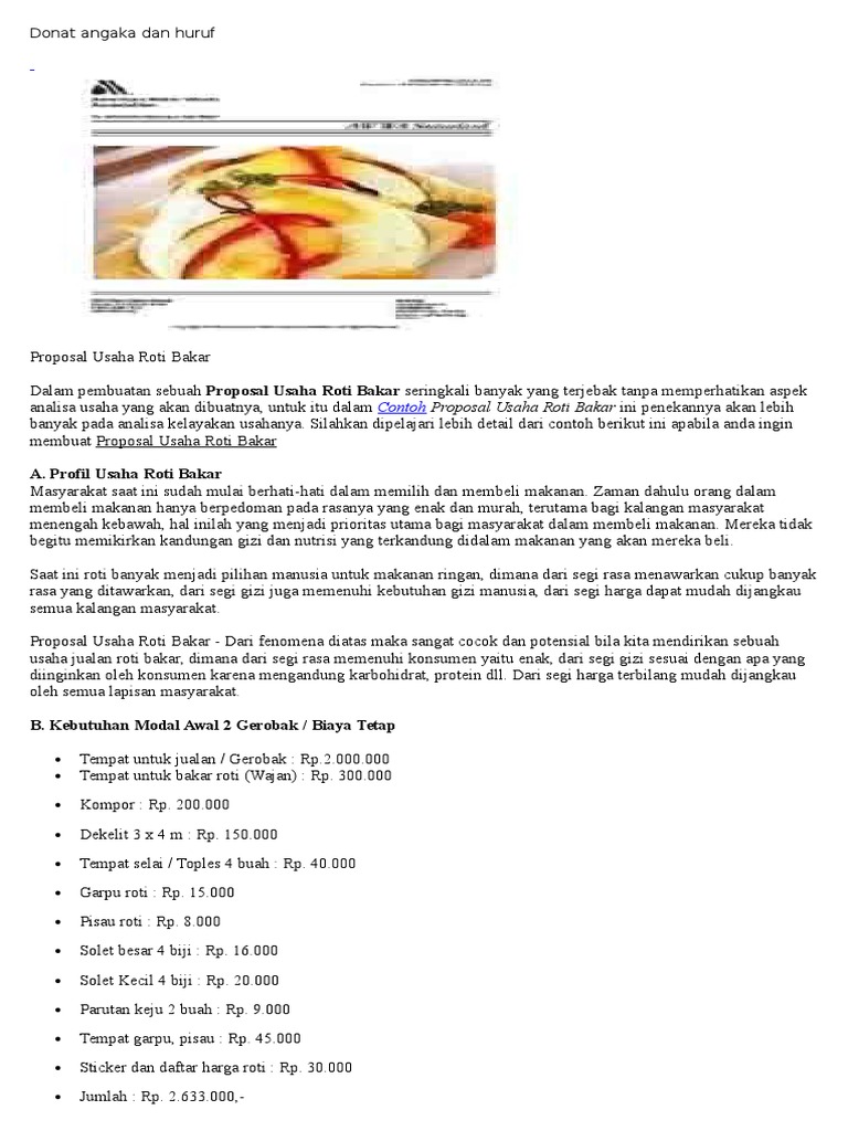 Dan di dalam blog tersebut dijelaskan berapa modal yang dibutuhkan bagaimana kita bisa memulai bisnis ini dan apa saja yang dibutuhkan untuk memulai usaha. AL-Quran Contoh Proposal Contoh Proposal Bisnis Contoh Proposal Karya Ilmiah Contoh Proposal Kegiatan Contoh Proposal Kualitatif. Donat bakar memiliki bermacam-macam variasi rasa seperti jagung bakar balado blueberry durian cokelat glaze cappucino tiramisu kacang keju donat ala burger sosis sapi dan lain lain.