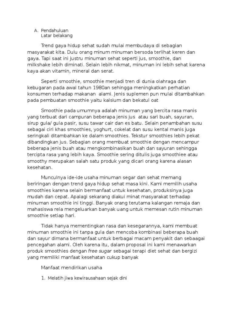 Mengembangkan inovasi inovasi baik dalam produk maupun pelayanan. Adalah sebuah hasil pemikiran usaha yang bergerak di bidang penjualan minuman segar. Download Proposal Usaha Milkshake PDF 1200 MB - SamPDF SamPDF ingin buka usaha minuman kekinian sendiri yang bukan FRANCHISE.