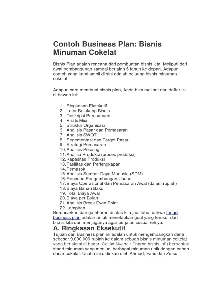 23 Bisnis Plan Minuman Coklat Info Dana Tunai